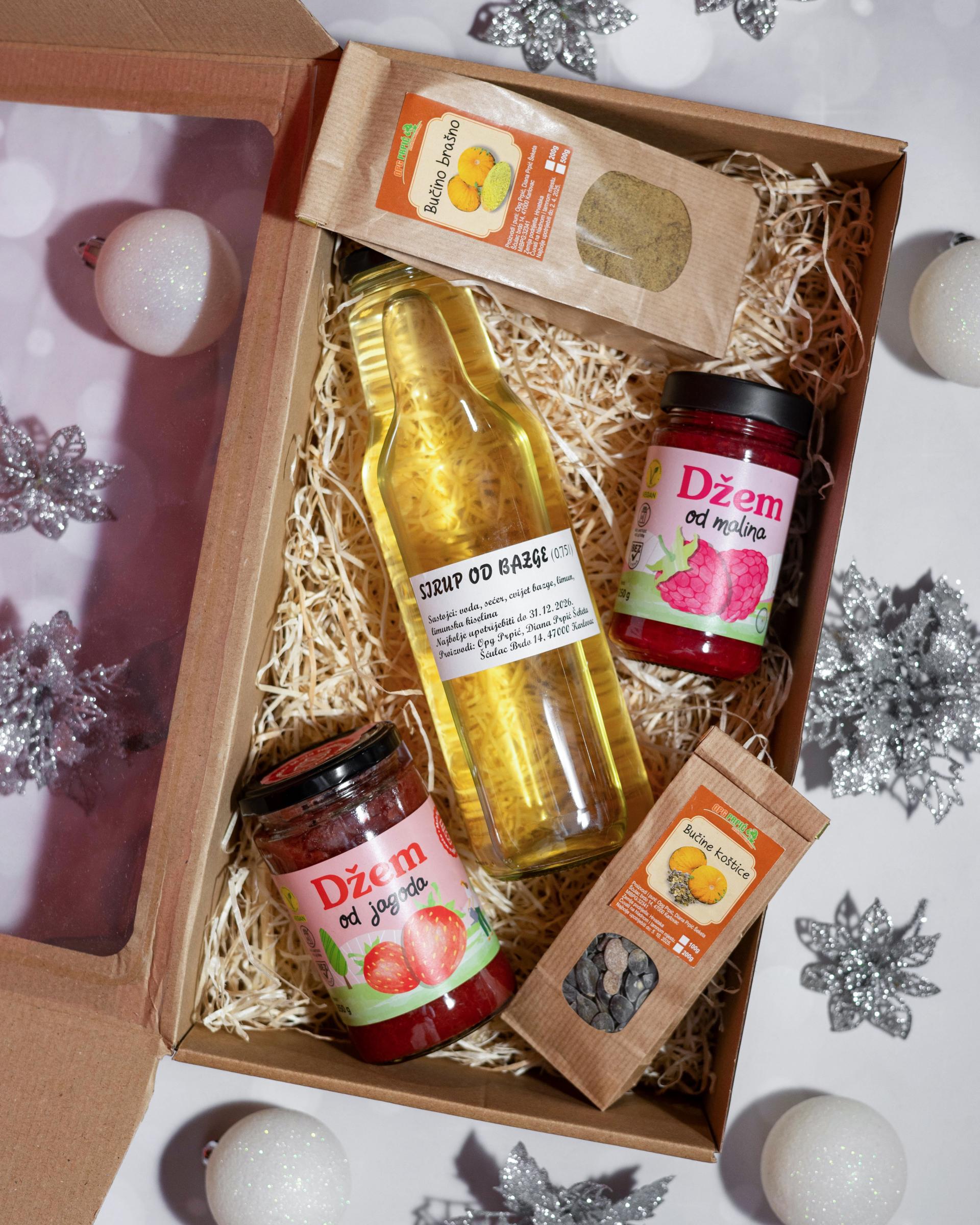 Sirup od bazge 750 ml Džem od jagoda 350g Džem od malina 250g Bućine koštice 100g Bućino brašno 200g