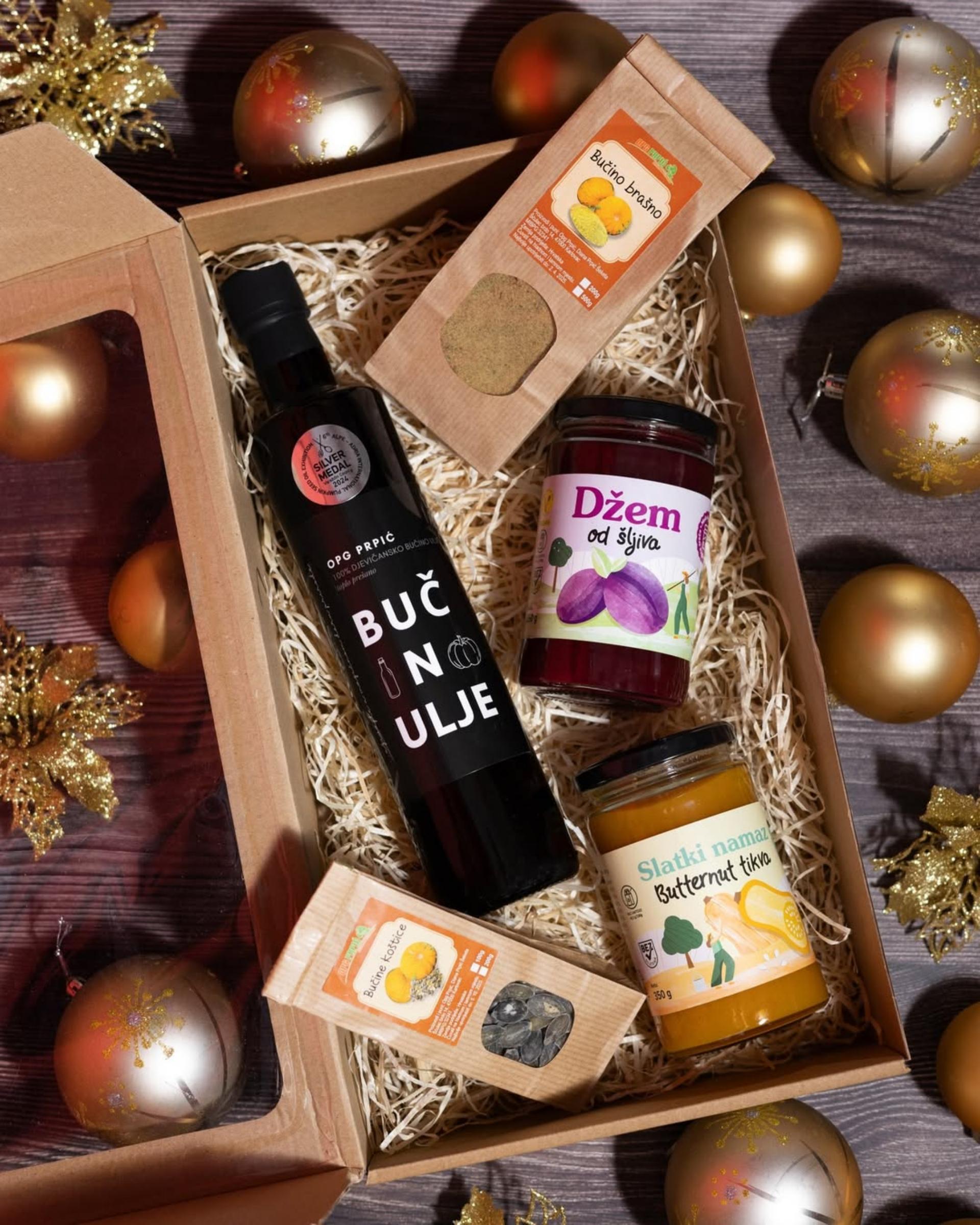 Bućino ulje 500ml Džem od šljiva 350g Slatki namaz od butternut tikve 350g Bućine koštice 100g Bućino brašno 200g